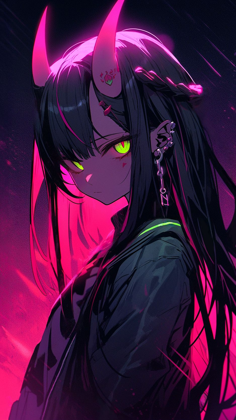 938x1668 девушка, пирсинг, рога, аниме, арт обои iphone 8/7/6s/6 for parallax