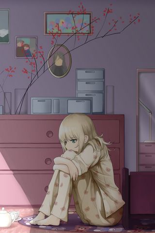 320x480 девушка, пижама, грусть, аниме, арт обои samsung galaxy ace gt-s5830, sony xperia e, miro, htc wildfire s, c, lg optimus
