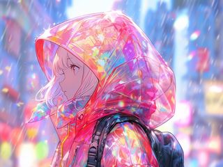 320x240 девушка, плащ, дождь, аниме, арт обои nokia e72, e71, asha, alcatel onetouch