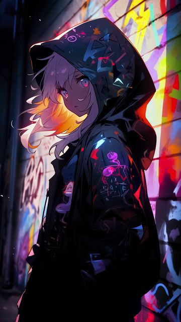 360x640 девушка, плащ, капюшон, граффити, арт, аниме обои nokia n8, c5, c6, c7, e7, x6 nokia 5800, 5230, 5228, sony ericsson vivaz