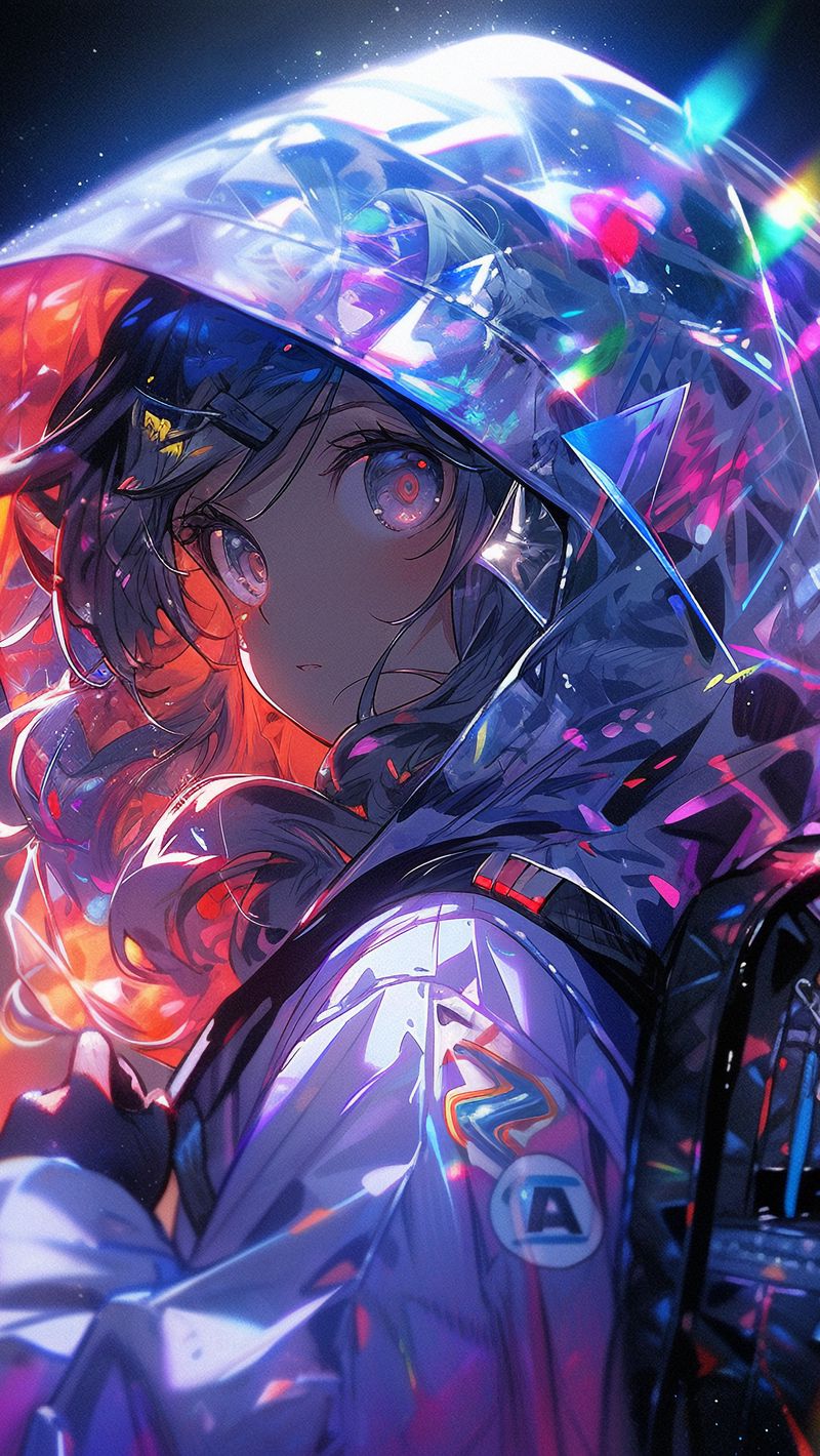 800x1420 девушка, плащ, капюшон, рюкзак, аниме обои iphone se/5s/5c/5 for parallax