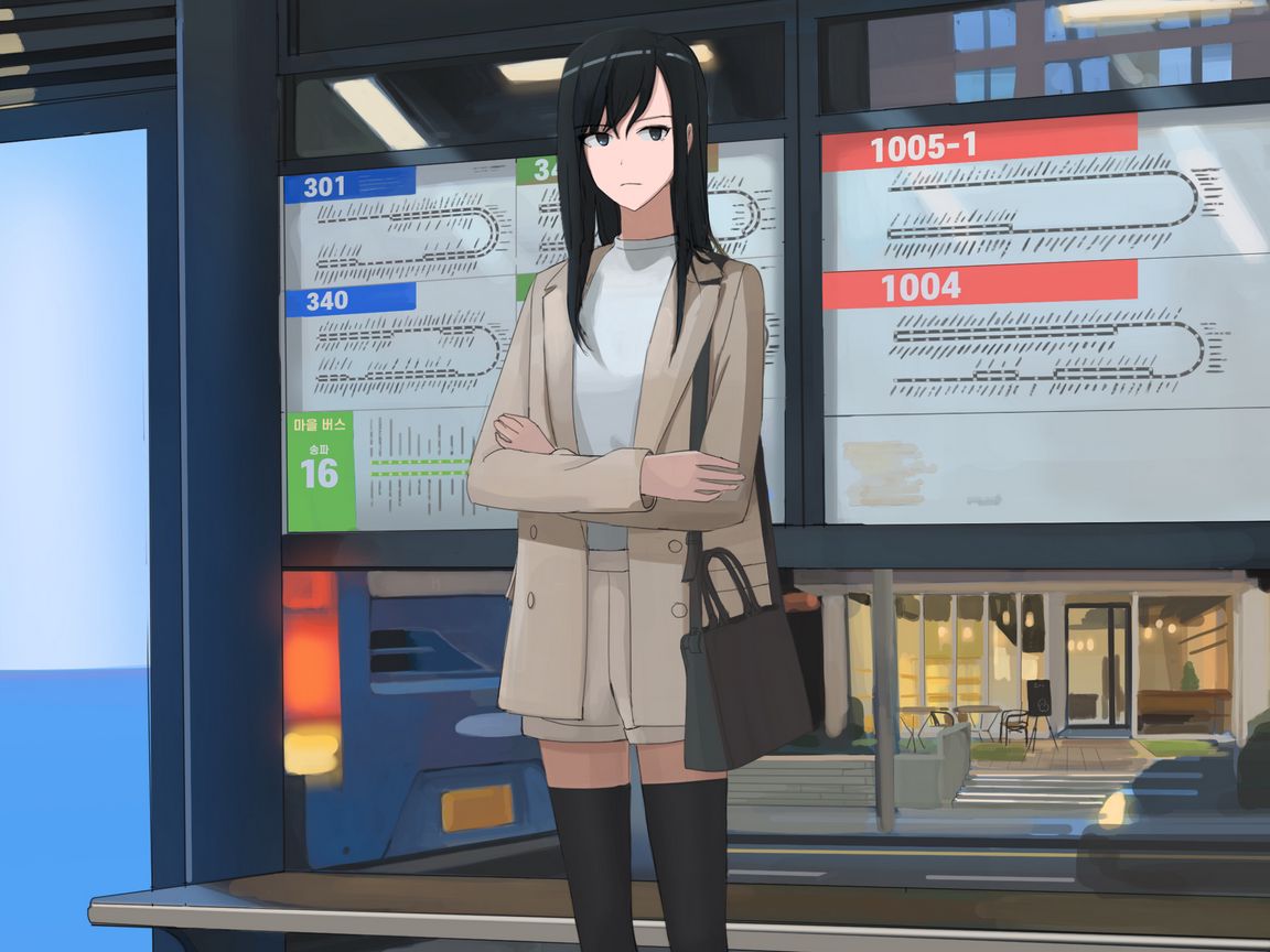 1152x864 девушка, плащ, перрон, аниме обои стандарт 4:3