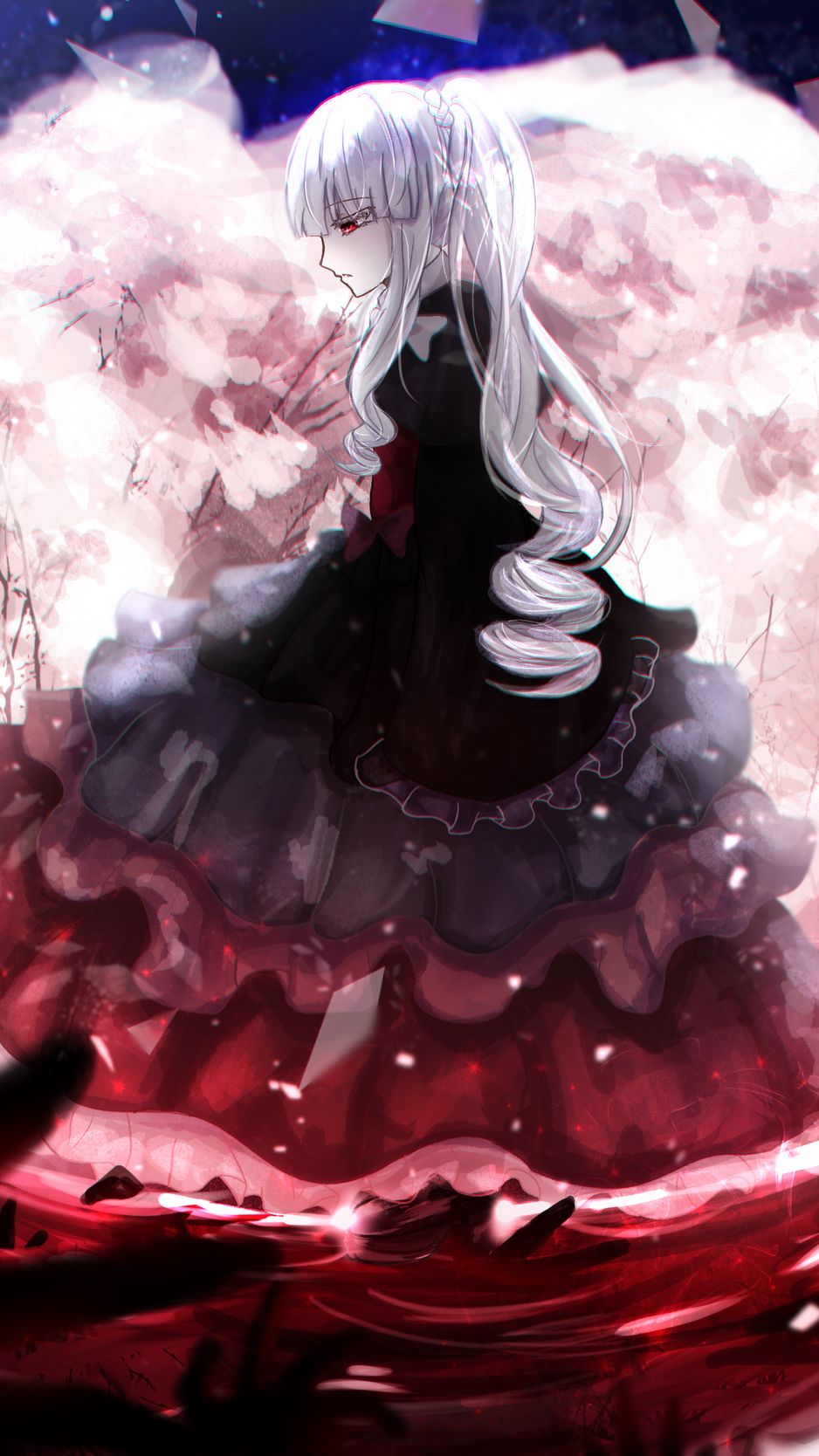 938x1668 девушка, платье, грусть, аниме, арт обои iphone 8/7/6s/6 for parallax