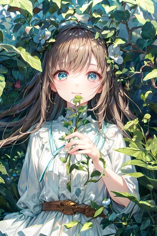 320x480 девушка, платье, листья, кусты, аниме обои samsung galaxy ace gt-s5830, sony xperia e, miro, htc wildfire s, c, lg optimus