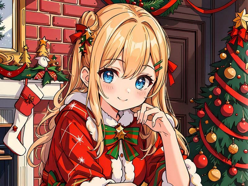 800x600 девушка, платье, новый год, рождество, подарки, елка, аниме обои pocket pc, pda, кпк