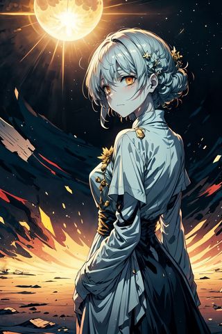 320x480 девушка, платье, планета, свет, арт, аниме обои samsung galaxy ace gt-s5830, sony xperia e, miro, htc wildfire s, c, lg optimus