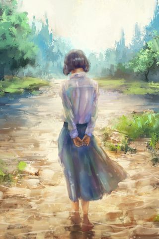 320x480 девушка, платье, спина, краски, холст обои samsung galaxy ace gt-s5830, sony xperia e, miro, htc wildfire s, c, lg optimus