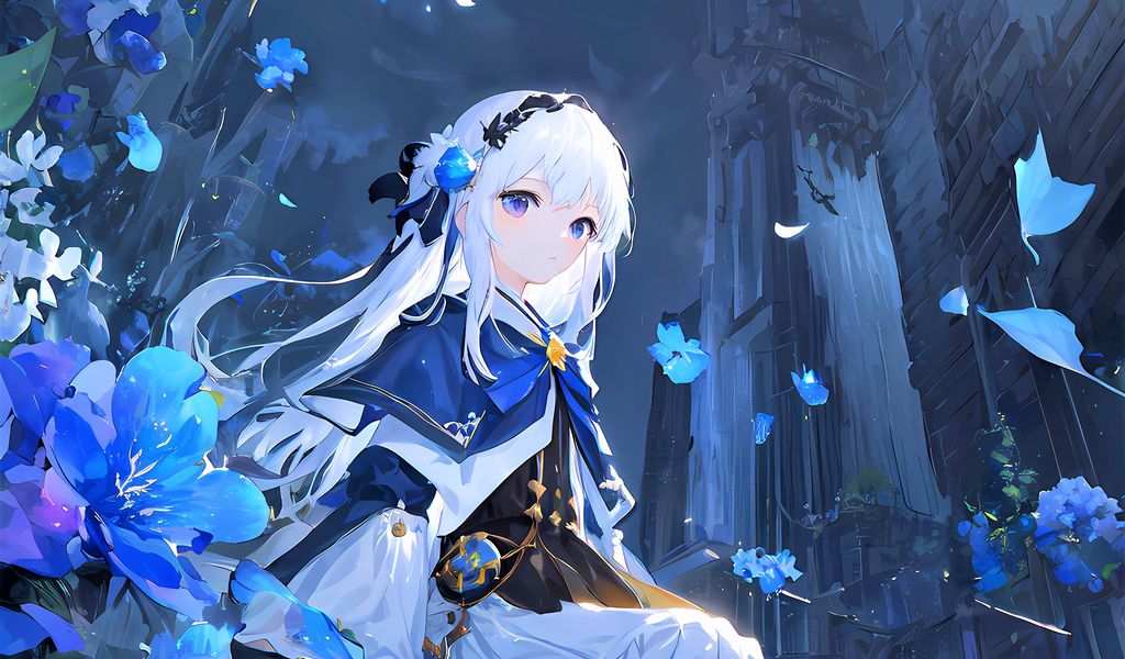 1024x600 девушка, платье, цветы, принцесса, аниме обои нетбук, планшет
