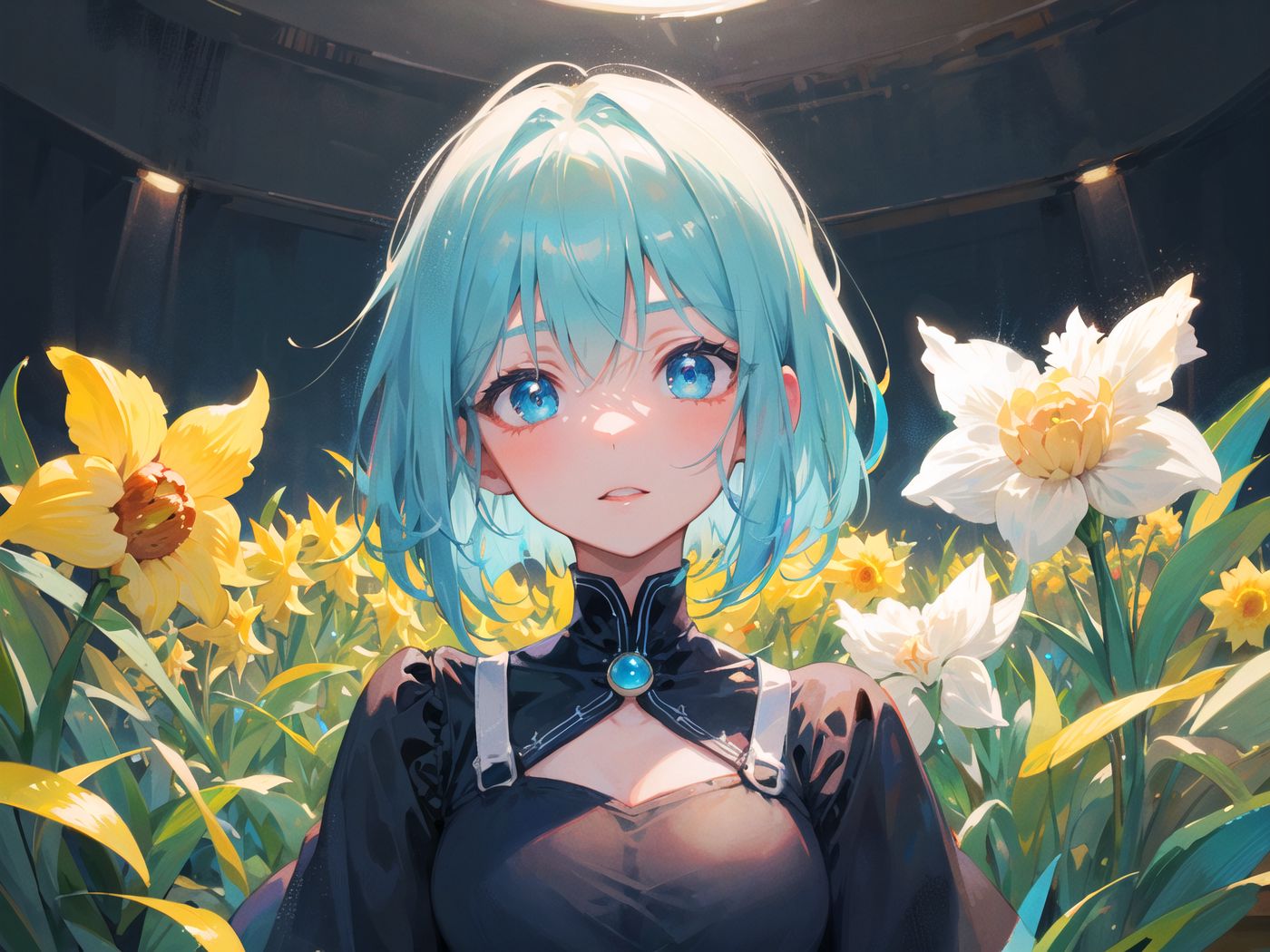 1400x1050 девушка, платье, цветы, арт, аниме обои стандарт 4:3