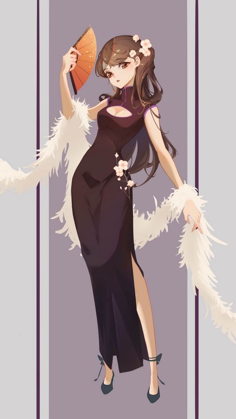 480x854 девушка, платье, веер, аниме, арт обои nokia lumia 630, sony ericsson xperia