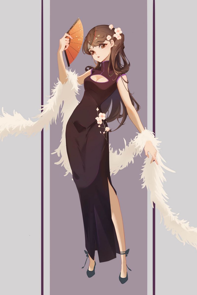 800x1200 девушка, платье, веер, аниме, арт обои iphone 4s/4 for parallax