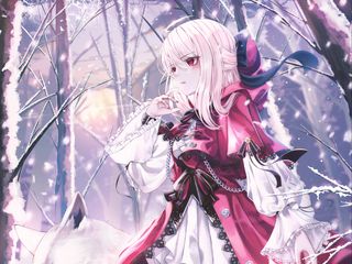 320x240 девушка, платье, волки, зима, аниме, арт обои nokia e72, e71, asha, alcatel onetouch