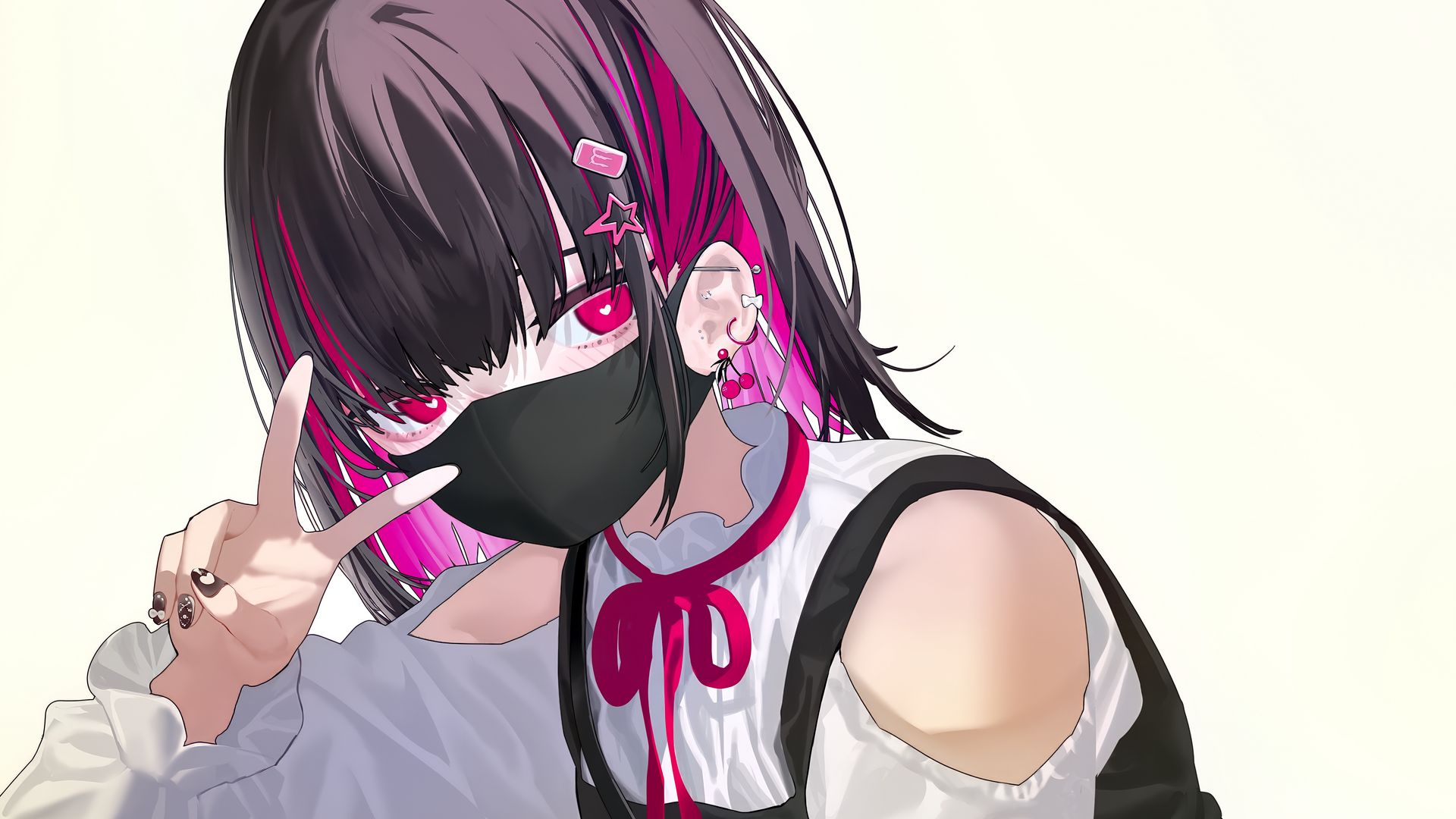 1920x1080 девушка, поза, жест, маска, пирсинг, аниме, арт обои full hd, hdtv, fhd, 1080p