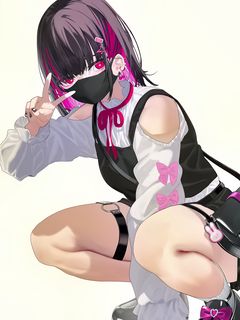 240x320 девушка, поза, жест, маска, пирсинг, аниме, арт обои мобильный телефон, смартфон