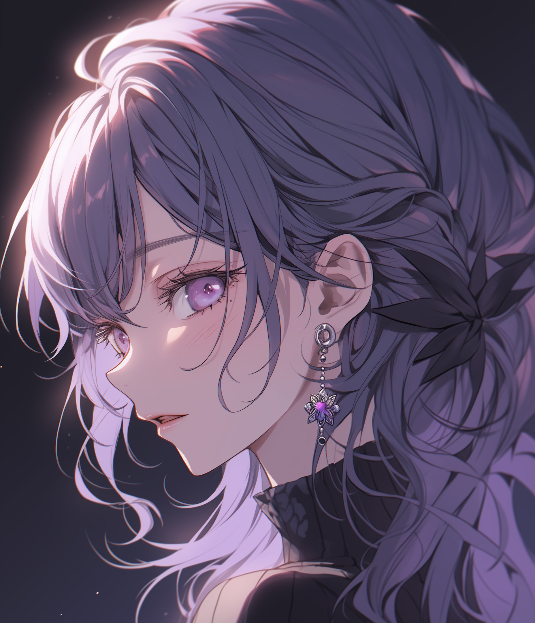 1856x2159 девушка, профиль, лицо, сережка, аниме, фиолетовый, арт обои