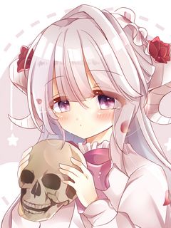 240x320 девушка, рога, череп, аниме, арт обои мобильный телефон, смартфон