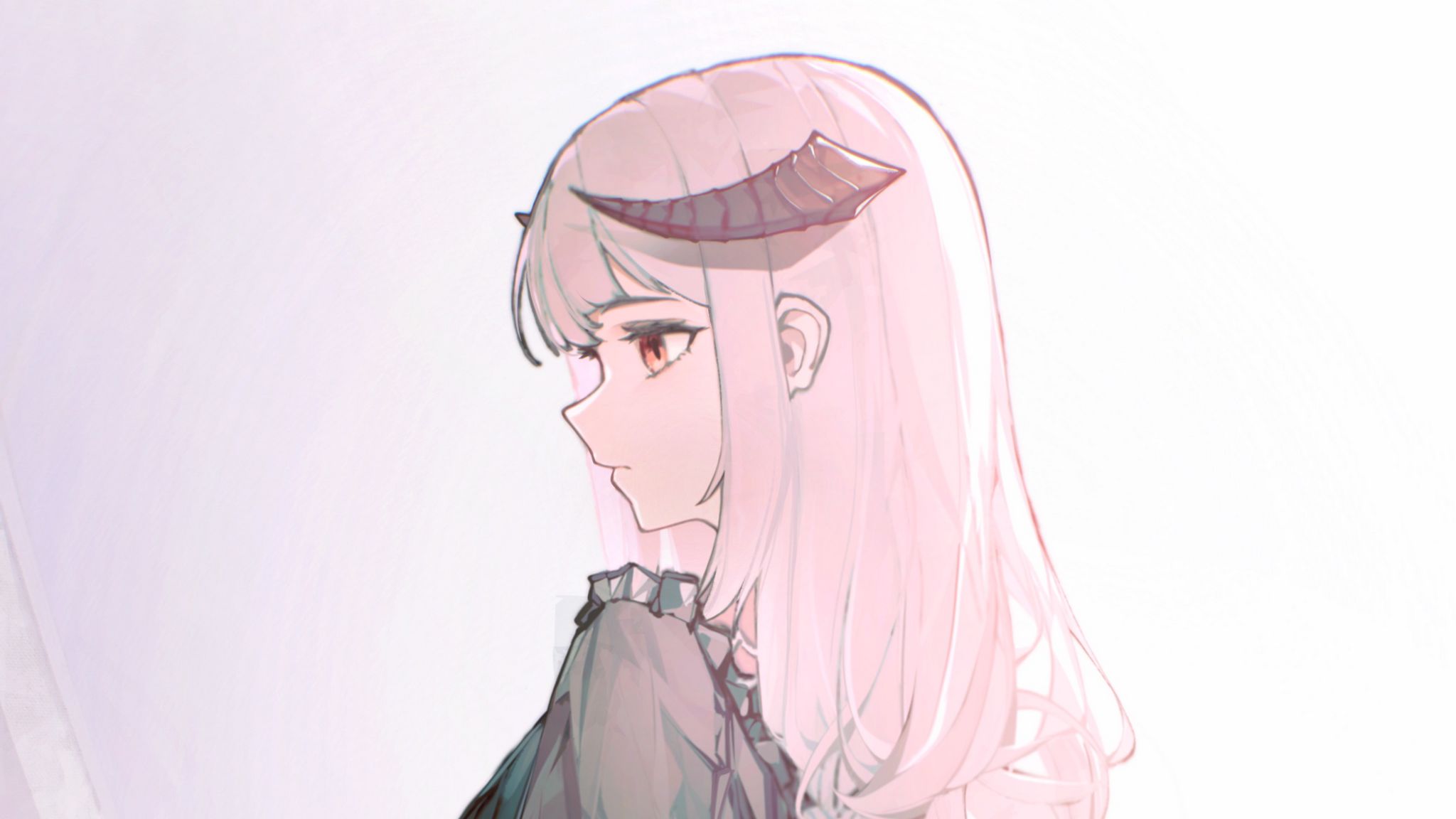 2048x1152 девушка, рога, демон, цветы, аниме, арт обои ультраширокий монитор
