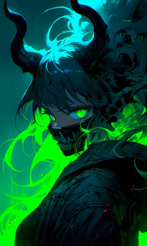 480x800 девушка, рога, маска, аниме, арт обои nokia x, x2, xl, 520, 620, 820, samsung galaxy star, ace, asus zenfone 4