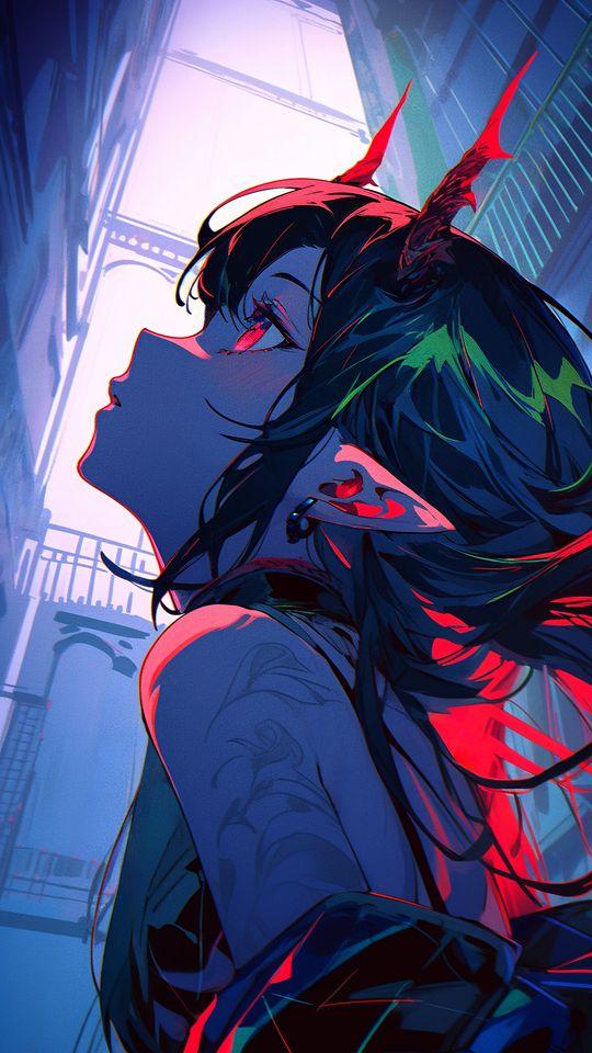 540x960 девушка, рога, профиль, взгляд, аниме обои samsung galaxy s4 mini, microsoft lumia 535, philips xenium, lg l90, htc sensation