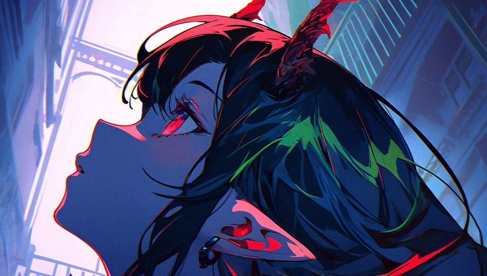 960x544 девушка, рога, профиль, взгляд, аниме обои playstation ps vita