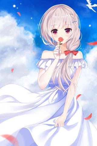320x480 девушка, роза, платье, аниме, арт обои samsung galaxy ace gt-s5830, sony xperia e, miro, htc wildfire s, c, lg optimus