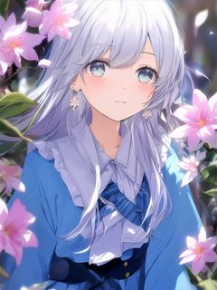 240x320 девушка, румянец, цветы, кимоно, аниме обои мобильный телефон, смартфон