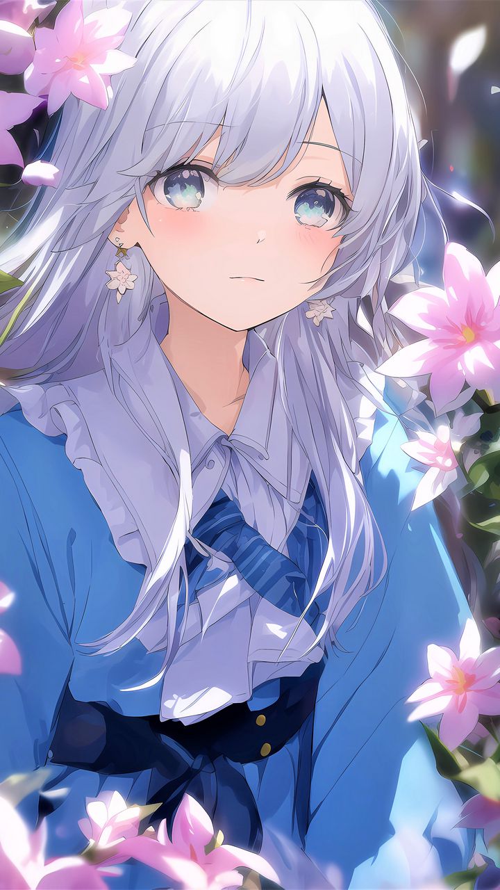 720x1280 девушка, румянец, цветы, кимоно, аниме обои samsung galaxy mini s3, s5, neo, alpha, sony xperia compact z1, z2, z3, asus zenfone