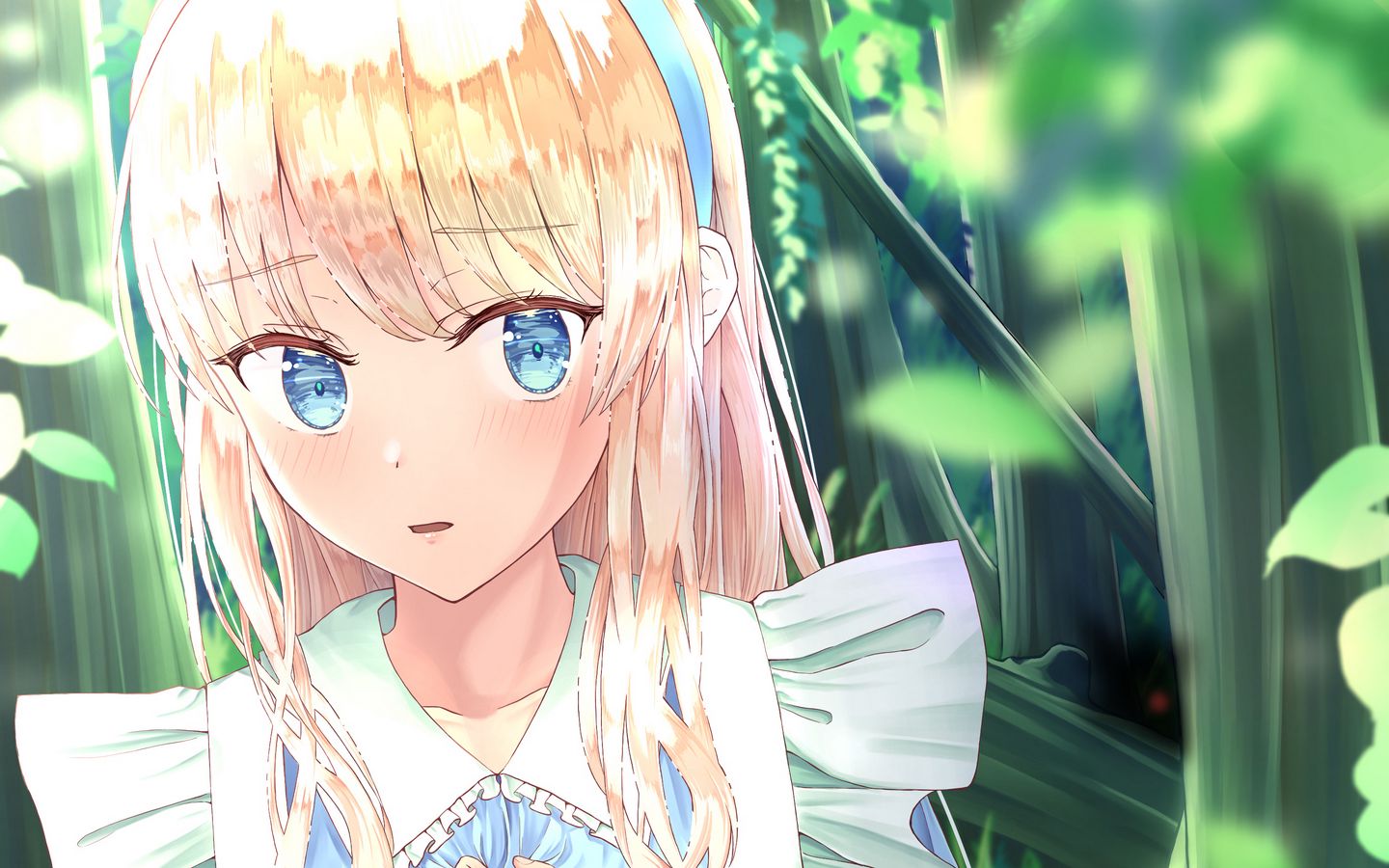 1440x900 девушка, сад, листья, аниме обои 16:10