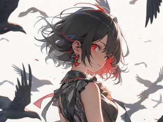 320x240 девушка, сережки, платье, птица, аниме, арт обои nokia e72, e71, asha, alcatel onetouch