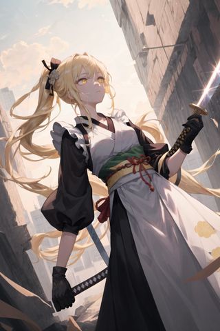 320x480 девушка, школьница, катана, аниме, арт обои samsung galaxy ace gt-s5830, sony xperia e, miro, htc wildfire s, c, lg optimus