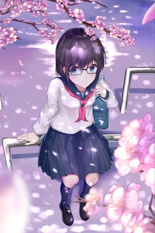 320x480 девушка, школьница, очки, форма, сакура, цветы, аниме обои samsung galaxy ace gt-s5830, sony xperia e, miro, htc wildfire s, c, lg optimus
