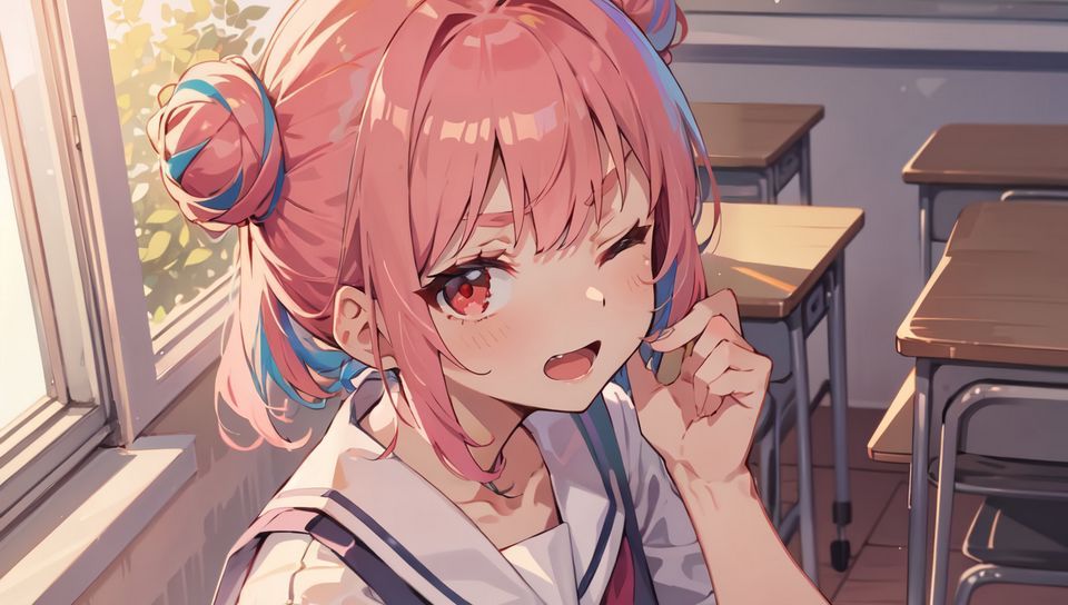960x544 девушка, школьница, улыбка, парта, аниме, арт обои playstation ps vita