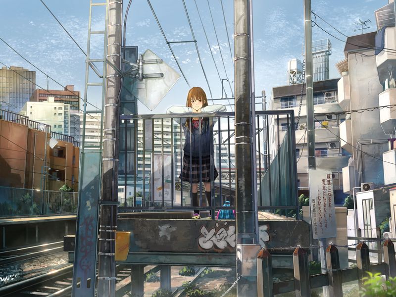 800x600 девушка, школьница, улыбка, перрон, аниме, арт обои pocket pc, pda, кпк