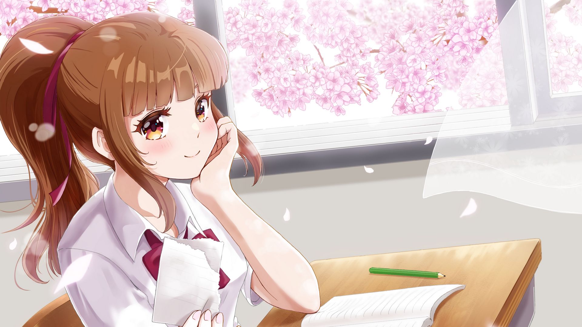 1920x1080 девушка, школьница, записка, аниме, арт обои full hd, hdtv, fhd, 1080p