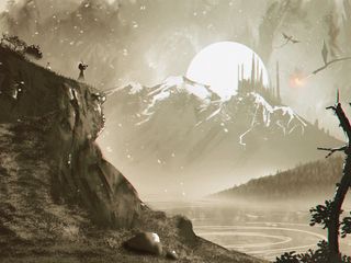 320x240 девушка, силуэт, скала, обрыв, арт обои nokia e72, e71, asha, alcatel onetouch
