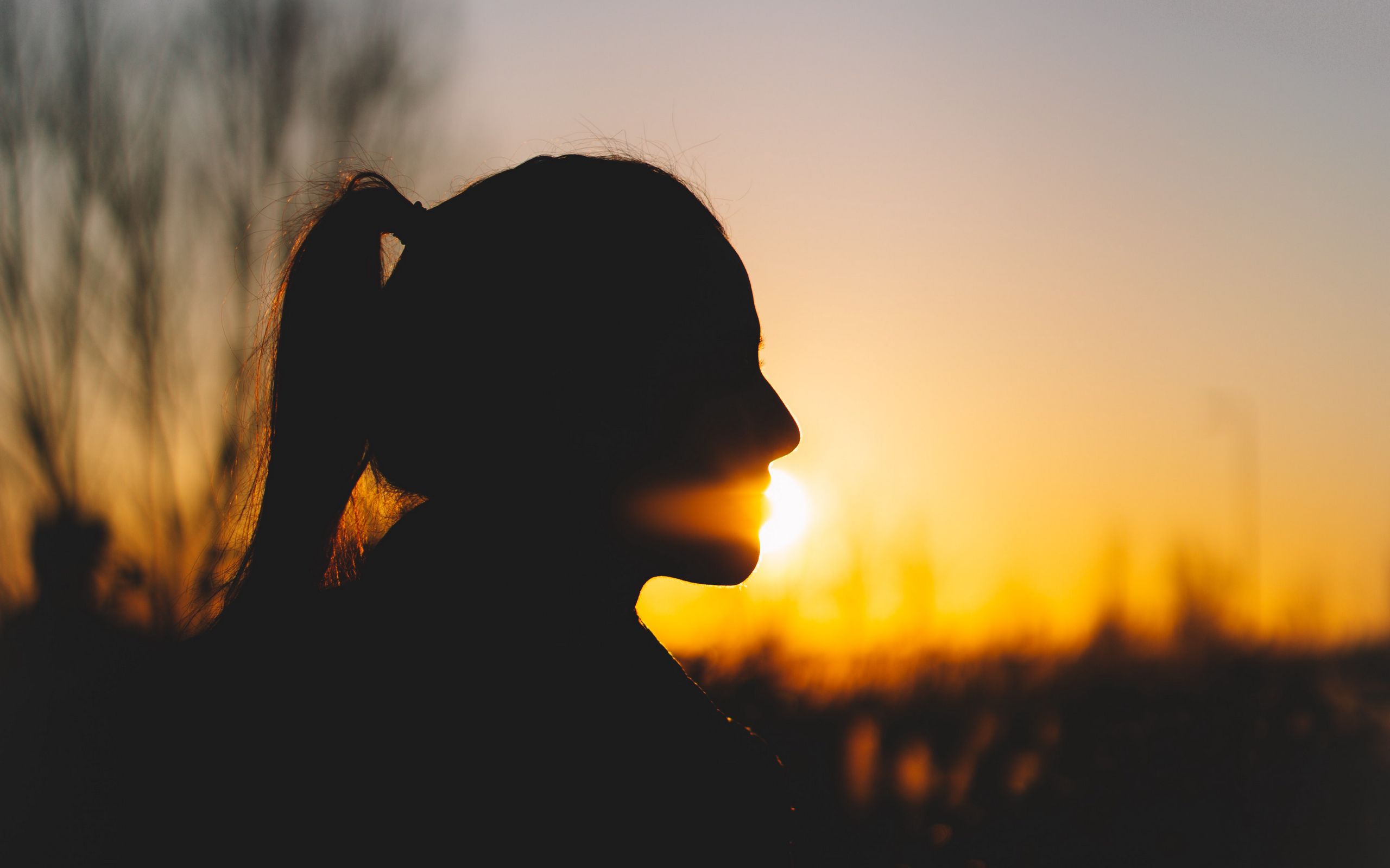 2560x1600 девушка, силуэт, темный, закат обои 16:10