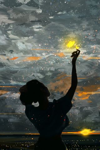 320x480 девушка, силуэт, жест, арт обои samsung galaxy ace gt-s5830, sony xperia e, miro, htc wildfire s, c, lg optimus
