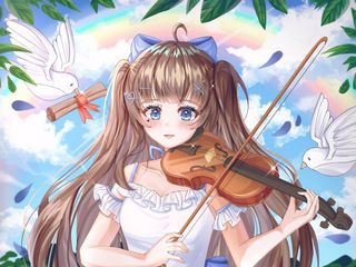 320x240 девушка, скрипка, птицы, аниме, арт обои nokia e72, e71, asha, alcatel onetouch