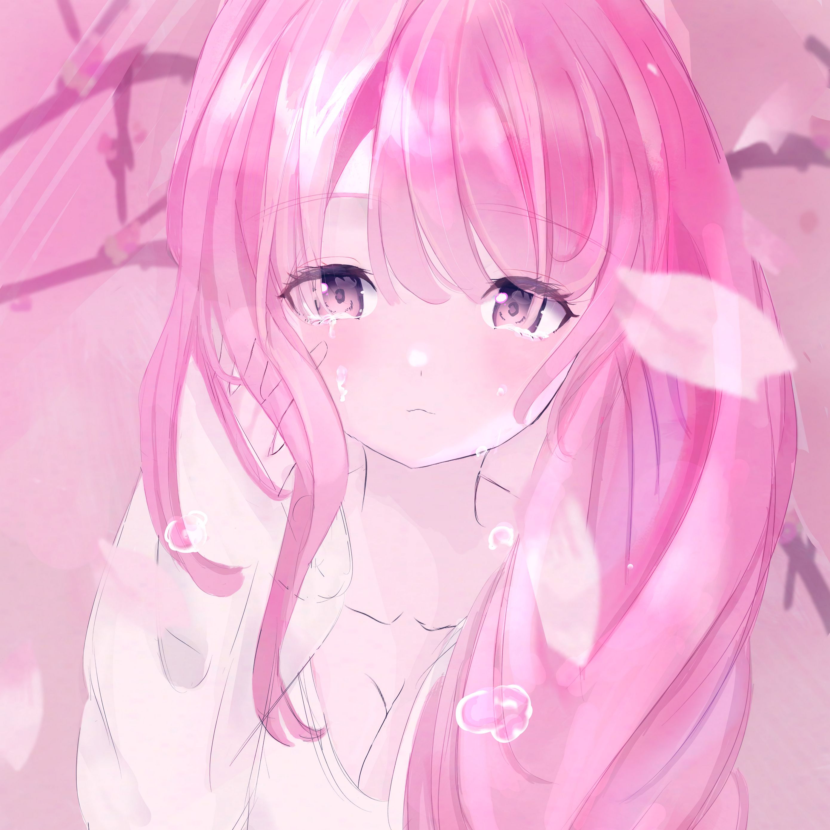 2780x2780 девушка, слезы, грусть, аниме, арт, розовый обои ipad air, ipad air 2, ipad 3, ipad 4, ipad mini 2, ipad mini 3, ipad mini 4, ipad pro 9.7" for parallax