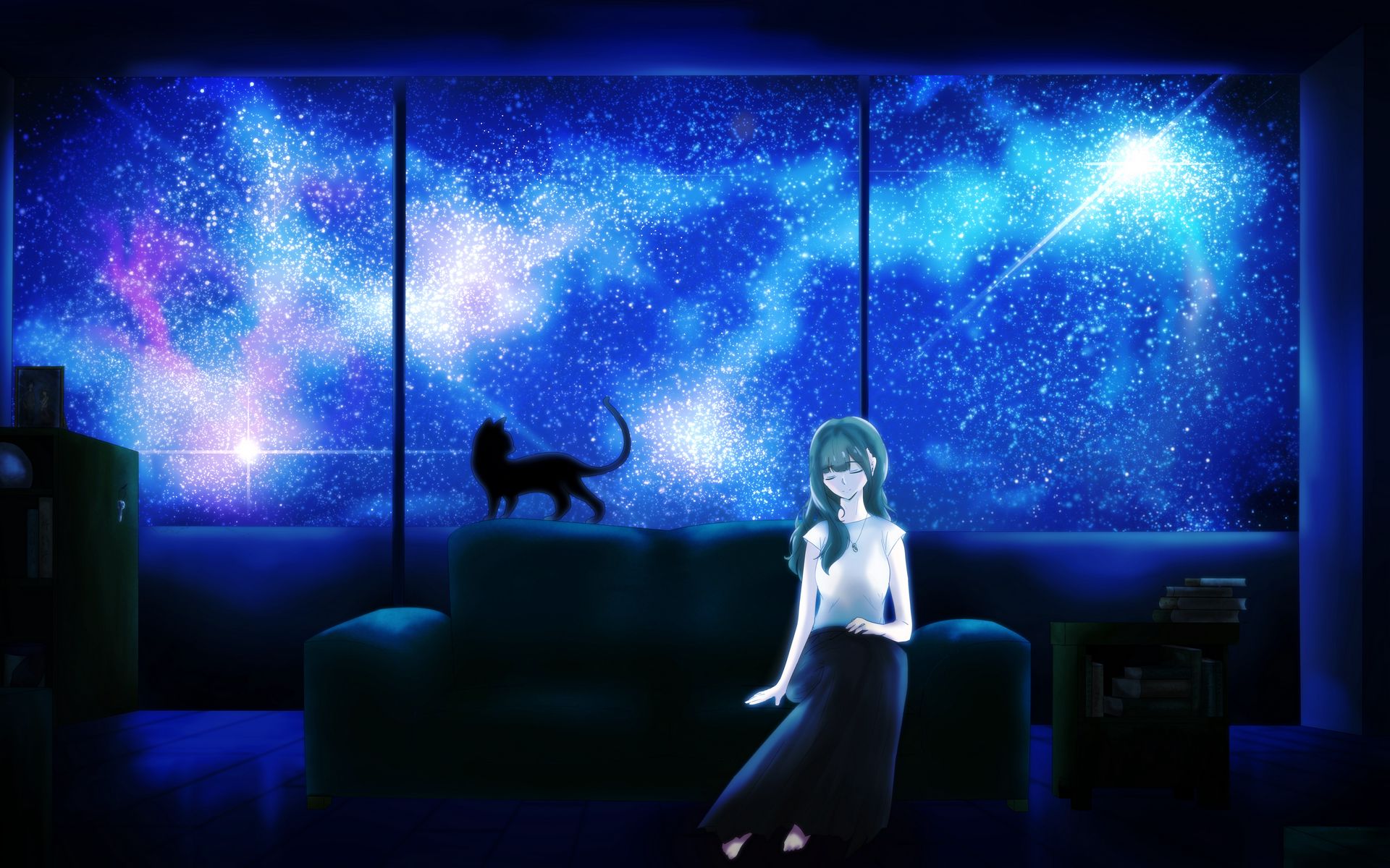 1920x1200 девушка, сон, ночь, звезды, аниме, арт обои 16:10