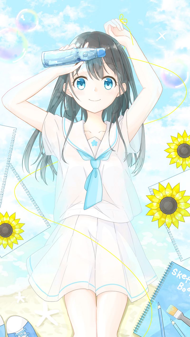 800x1420 девушка, тетради, цветы, аниме, арт обои iphone se/5s/5c/5 for parallax