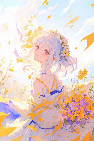 320x480 девушка, цветы, лепестки, свет, аниме обои samsung galaxy ace gt-s5830, sony xperia e, miro, htc wildfire s, c, lg optimus