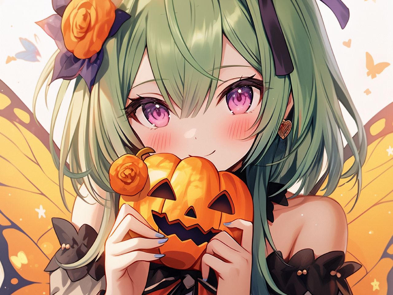 1280x960 девушка, тыква, хэллоуин, аниме, праздник обои стандарт 4:3