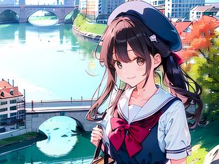 320x240 девушка, улыбка, берет, сумка, аниме обои nokia e72, e71, asha, alcatel onetouch