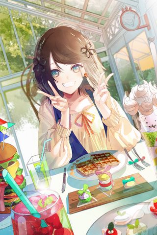 320x480 девушка, улыбка, десерт, аниме, арт обои samsung galaxy ace gt-s5830, sony xperia e, miro, htc wildfire s, c, lg optimus