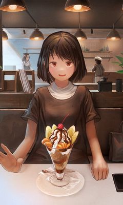 240x400 девушка, улыбка, десерт, свидание, аниме, арт обои nokia asha 311, samsung galaxy 580, omnia, lg kp500