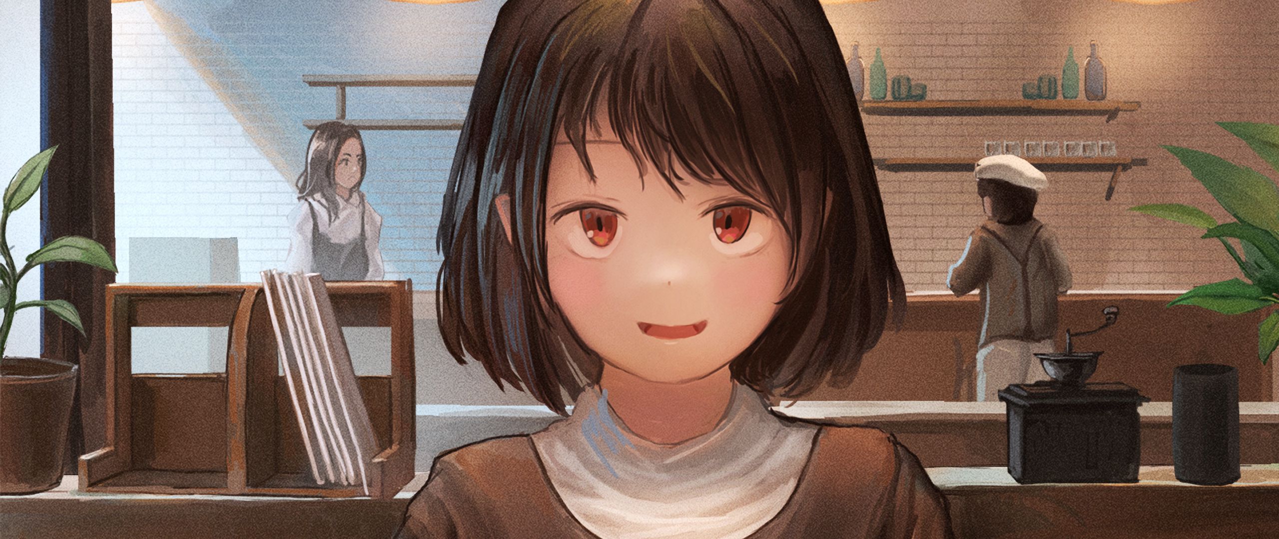 2560x1080 девушка, улыбка, десерт, свидание, аниме, арт обои два монитора 1080p