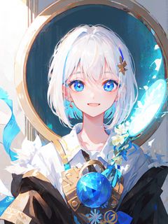 240x320 девушка, улыбка, каре, шар, зеркало, сияние, аниме обои мобильный телефон, смартфон