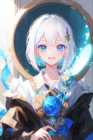 320x480 девушка, улыбка, каре, шар, зеркало, сияние, аниме обои samsung galaxy ace gt-s5830, sony xperia e, miro, htc wildfire s, c, lg optimus