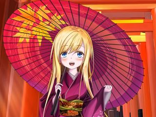 320x240 девушка, улыбка, кимоно, зонтик, аниме, арт обои nokia e72, e71, asha, alcatel onetouch